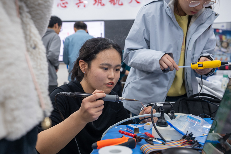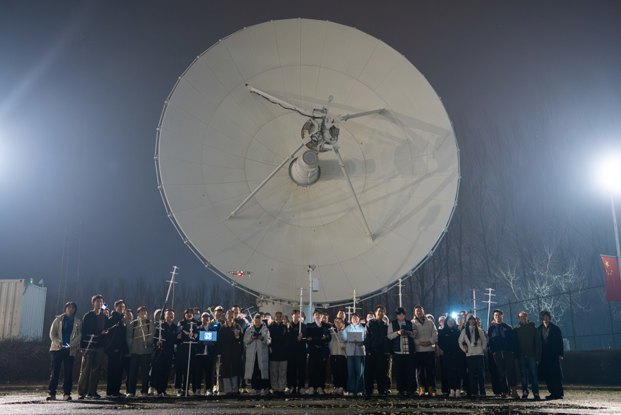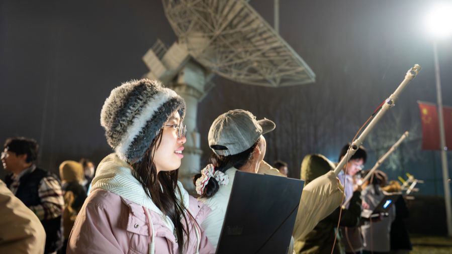 20时38分,现场氛围到达顶点——阿斯图友谊号卫星划破夜幕,如期过境。现场的爱好者屏息以待,纷纷捧起笔记本电脑,屏幕的微光照亮一张张专注的脸庞。他们高高举起亲手打造的自制天线,如浪潮般朝着卫星移动的星痕齐齐对准。那一片整齐划一、朝向天际的“金属触角”,与不远处13米口径卫星地面站的庞大身躯相映成景,宛如一片在夜色中向着星光颔首的“向日葵花田”,壮阔又动人。 23岁的孔祥祎是个不折不扣的科幻迷。作为哈工大“思飞科幻社”成员,他高中就看完了《三体》所有系列丛书。自动化专业的本科背景让他对宇宙的想象始终带着科幻色彩。“以前总在小说里看人类接收外星信号,没想到有一天能亲手尝试接收卫星信号。”这是他第一次接触无线电,从连接导线时的手抖,到调试天线时的反复校准,这个科幻迷把对星空的热爱,变成了每一个实操细节里的较真。孔祥祎激动地说:“今晚有同学引用电影《宇宙探索编辑部》的台词说,大家收到的信号,哪怕只是白噪声,那也不是普通的雪花点,而是宇宙诞生时的余晖。” 二 认真地玩,不限领域 在北京邮电大学沙河校区,活动组织者、37岁的马克在发射前一天,提前赶到校园调试设备。没想到推开活动室门时,学生们早已齐刷刷地忙开了。他们没有急于摆弄精密仪器,而是先拿起扫帚、拖把,认真地清扫地面,连角落的灰尘都不放过;接着又端来清水和抹布,小心翼翼地擦拭每一台设备的外壳与接口,动作轻柔却仔细,仿佛在呵护一件稀世珍宝。“先把环境和设备收拾干净,后续操作才不会出纰漏。”有学生抬头冲他笑了笑,眼里满是激动。 让马克意外的,是参加活动的学生专业背景并非清一色的工科生,反而有不少来自生物、医疗、工业设计等看似与无线电“不搭界”的领域。年轻人用跨领域的热忱,打破了“只有工科生才懂技术”的刻板印象。马克说:“我们发起‘三体日’业余无线电活动,核心就是想搭建一个能让大家近距离了解航天科技与无线电知识的实践平台。比起书本上的理论和线上的讲解,这种亲手调试天线、接收卫星信号的线下实践,能让科普教育落地,让更多人感受到科技的魅力。” 当天的活动中,有个身影格外引人注目。来自哈工大的19岁女孩吴嘉珊,可能是全场年龄最小的业余无线电爱好者,18岁那年就考取了业余无线电A类操作证。在应用物理专业读大二的她,对无线电的运用熟练度,已远超同龄人水准。